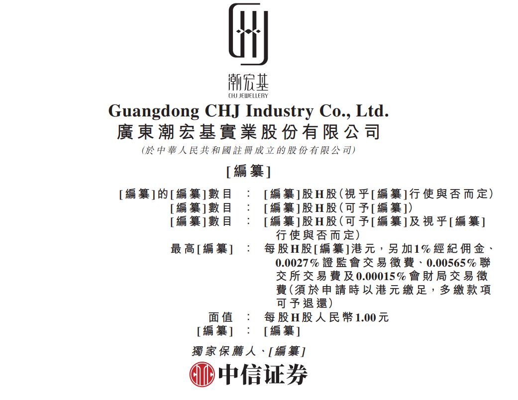 据港交所9月12日披露,广东潮宏基(002345)实业股份有限公司(简称:潮宏基(002345.SZ))向港交所主板递交上市申请,中信证券为其独家保荐人。